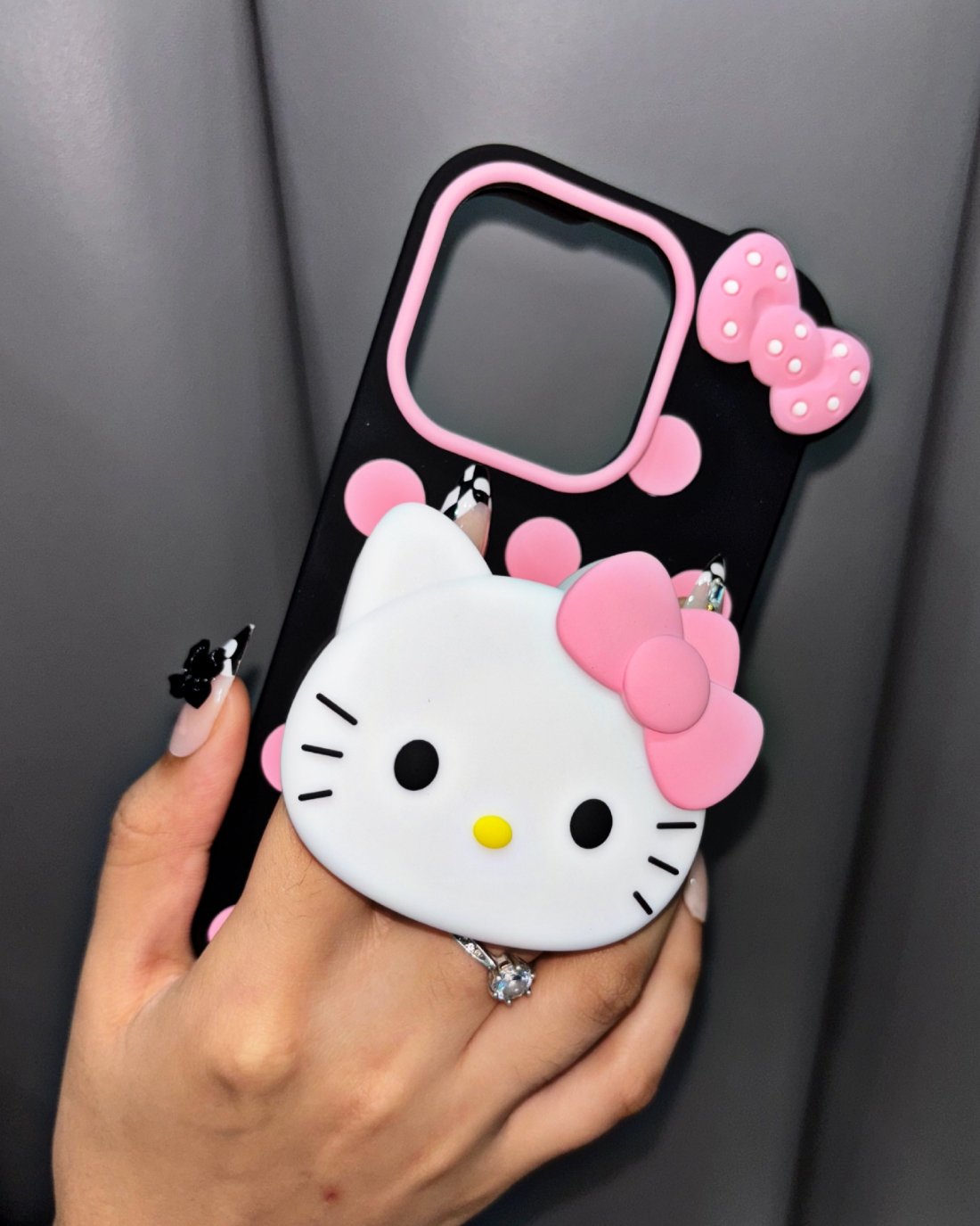 The large Hello Kitty face actually works as a secure Pop-Up Grip, allowing you to slide your fingers underneath for a comfortable, stable hold. It reduces drops and works perfectly as a stand for hands-free viewing!