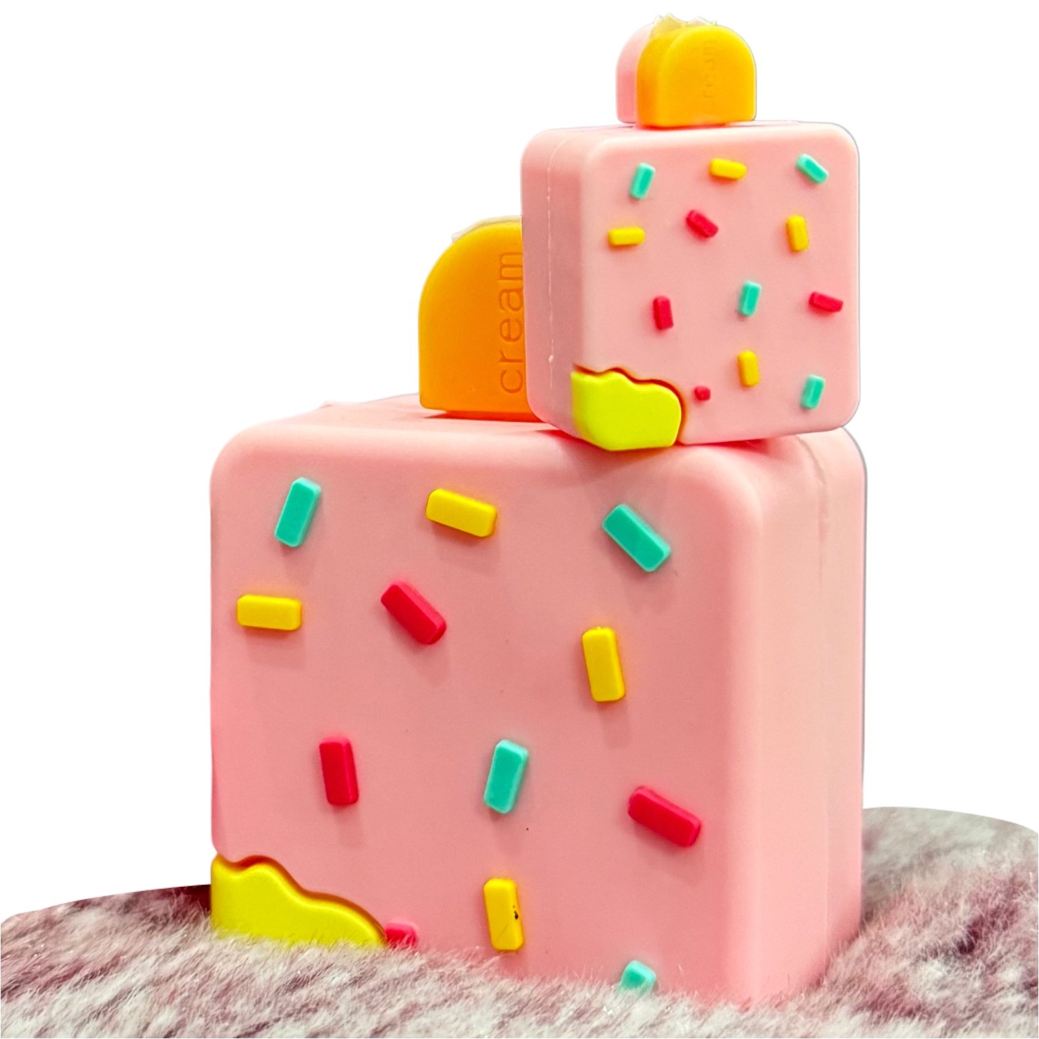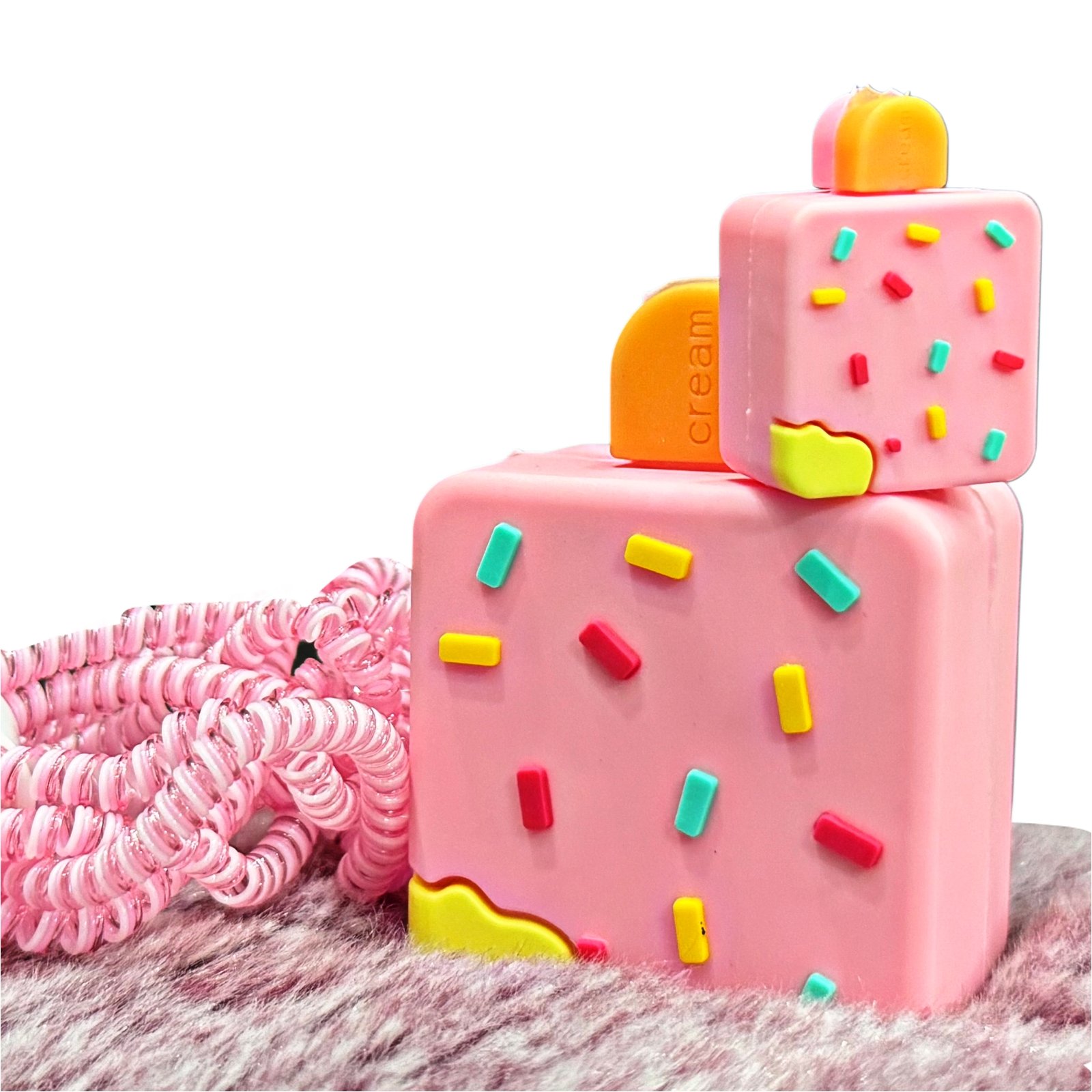 Protect your 20W iOS charger in sweet style with this Pink Sprinkles Silicone Case. The unique cake cube design is made from durable, protective silicone that guards against scratches and drops. It’s a fun, cute accessory that makes your adapter easy to find.