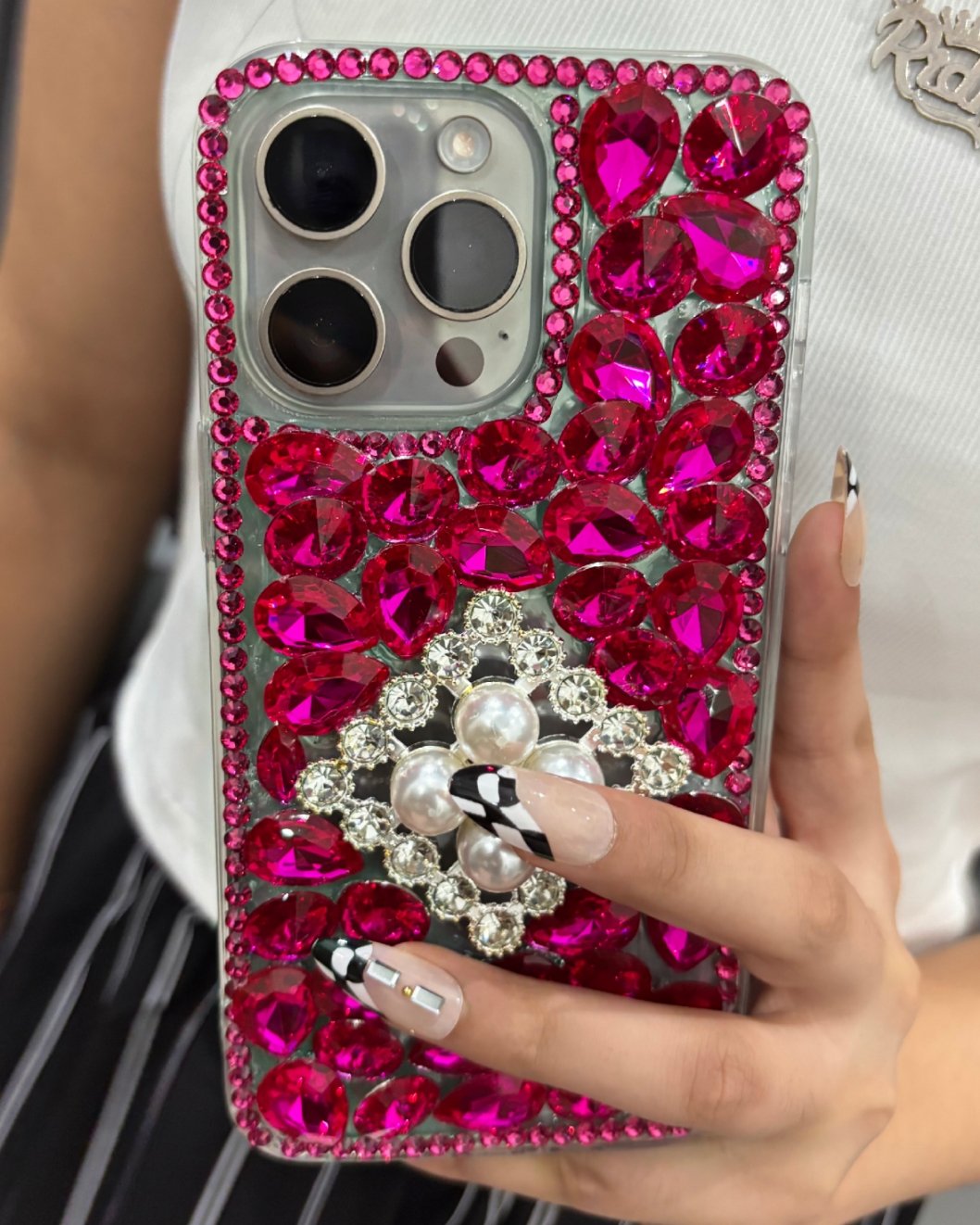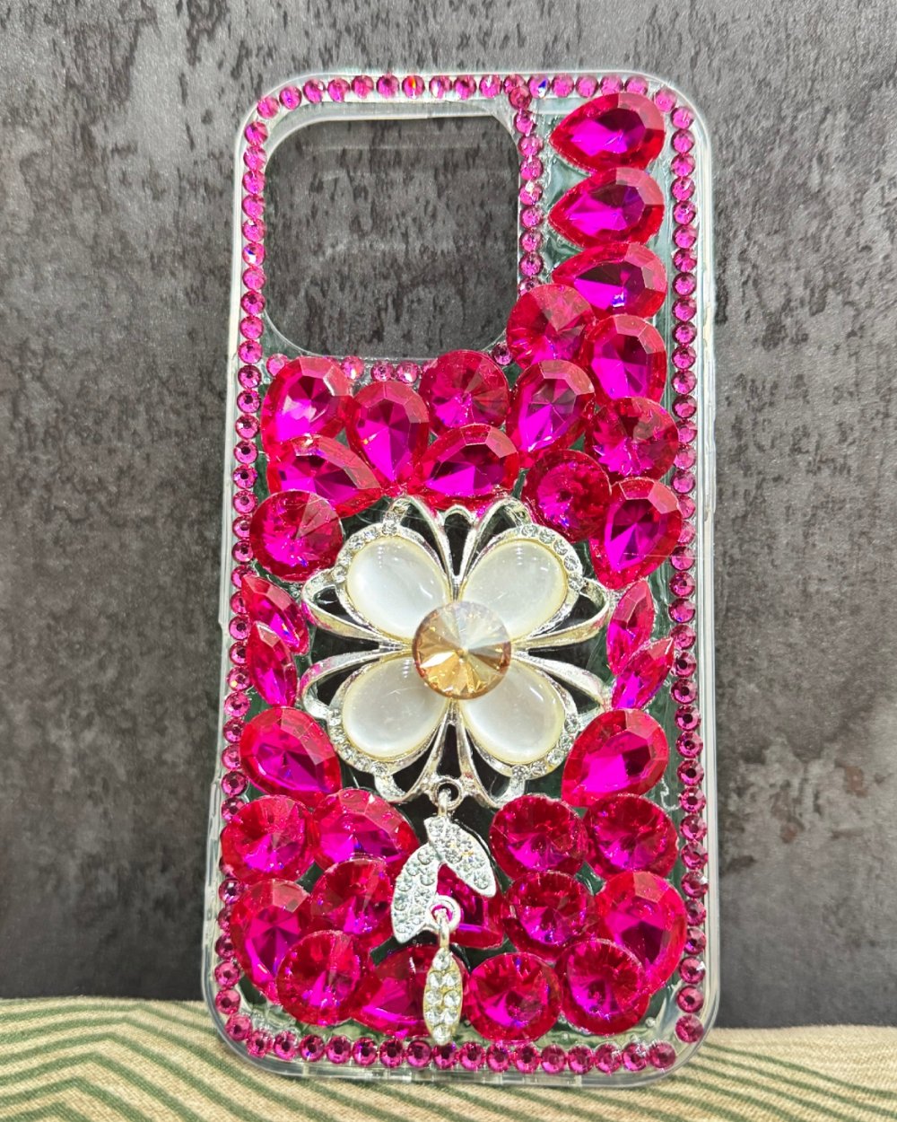 Make a bold, dazzling statement with the Hot Pink Dazzle Gemstone Phone Back Cover. This cover isn’t just protection—it’s a luxury accessory designed to get noticed.