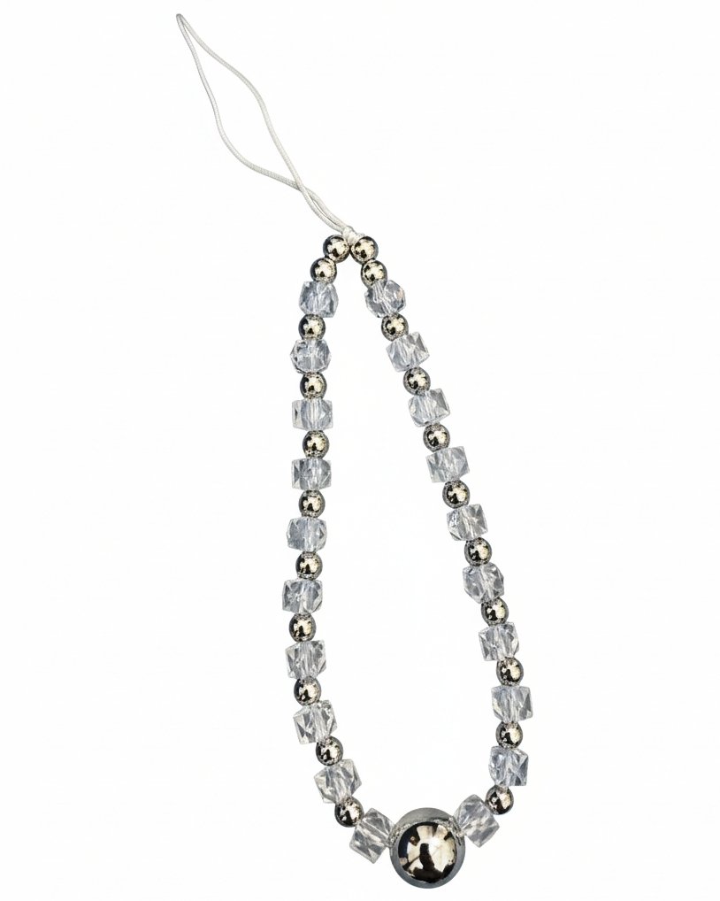This aesthetic phone lanyard is the perfect way to add subtle sparkle to your look. The transparent crystal beads catch the light beautifully, while the silver metallic beads provide a clean, modern contrast. Securely attach this beaded charm to your cell phone, keys, or purse for an instant sophisticated upgrade.